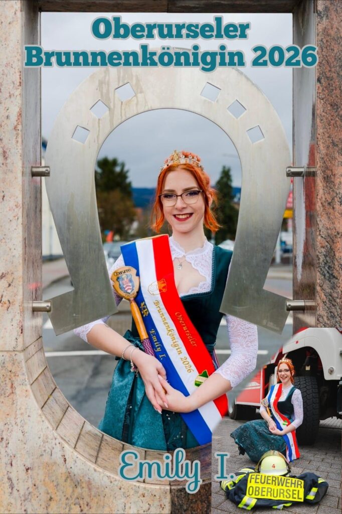 Es grüßt euch zum ersten Mal eure 46. Oberurseler Brunnenkönigin – Emily I. mit Brunnenmeisterin Michèle
